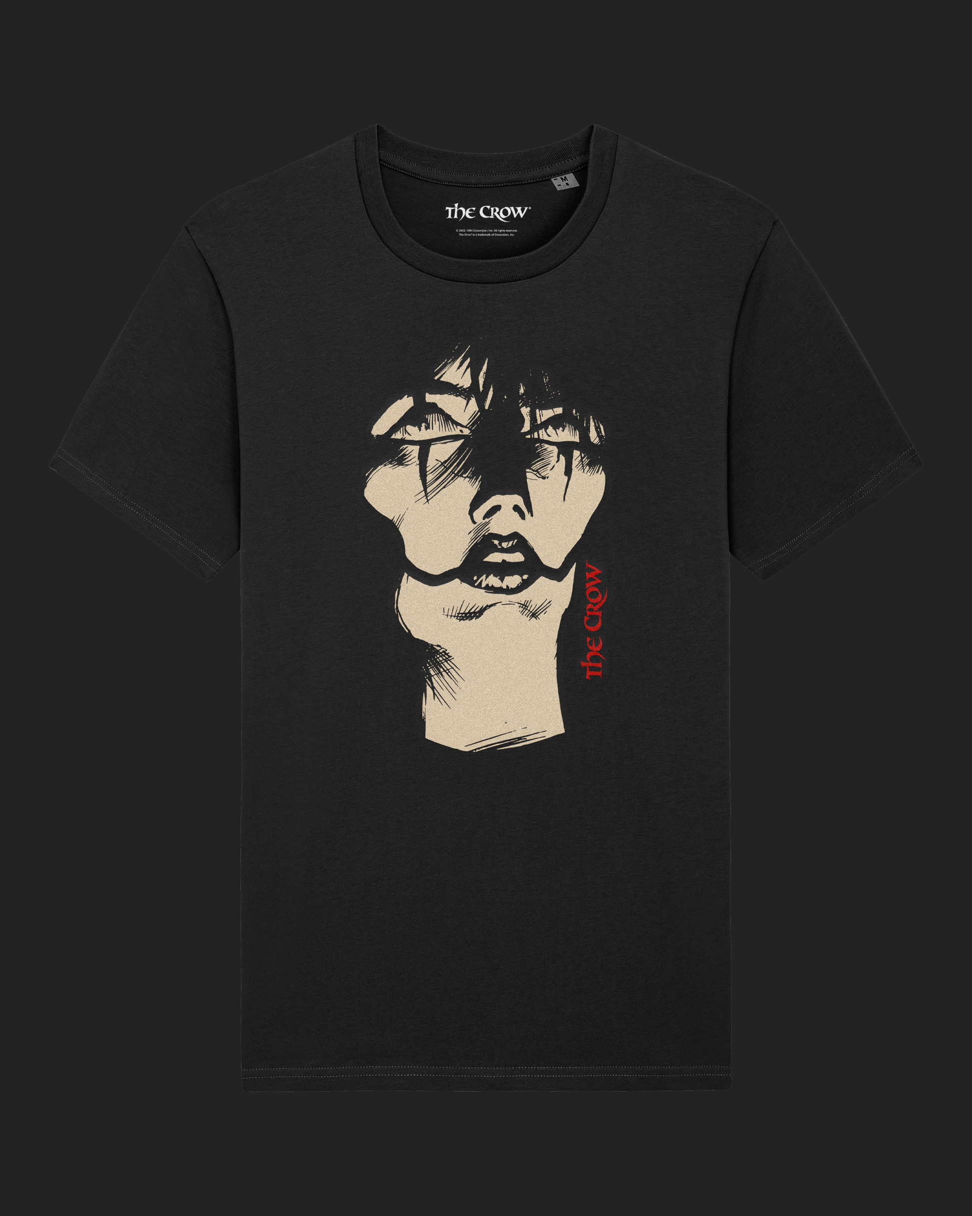 The Crow Portrait graphic t-shirt is a cotton garment featuring an extract from the graphic novel The Crow by James O'Barr (1989).